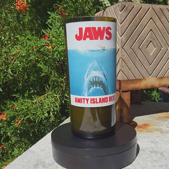 Add a splash of suspense to your space with this 16oz wine bottle candle, hand-poured into a recycled bottle featuring a retro ocean scene label. A massive shark lurks just below the waves, giving this candle a playful nod to classic summer thrillers—without saying the name. Inside, the Orange Grove scent blends citrus and mimosa flower for a bright, refreshing fragrance that feels like sunshine on the water. It’s a bold mix of fun, nostalgia, and eco-friendly charm.